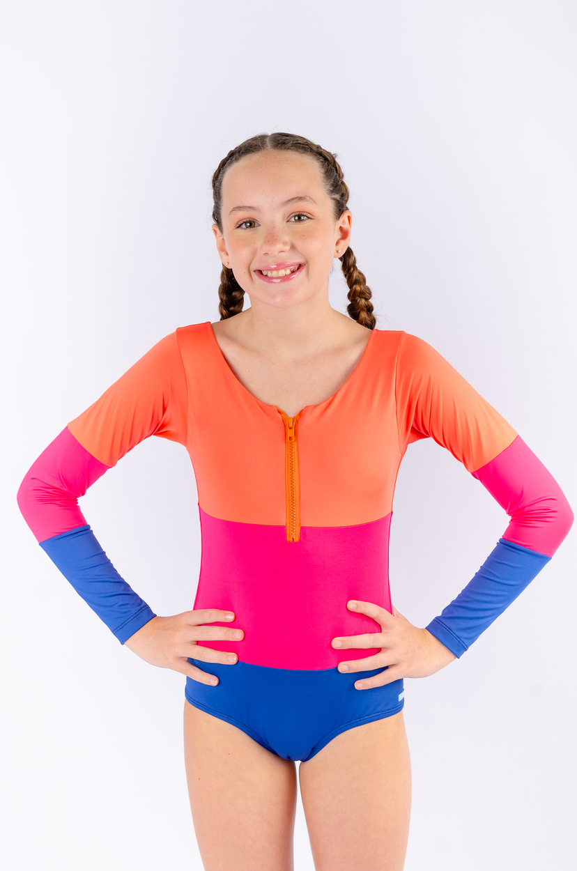 maiô inteiro com ziper e mangas colorido
