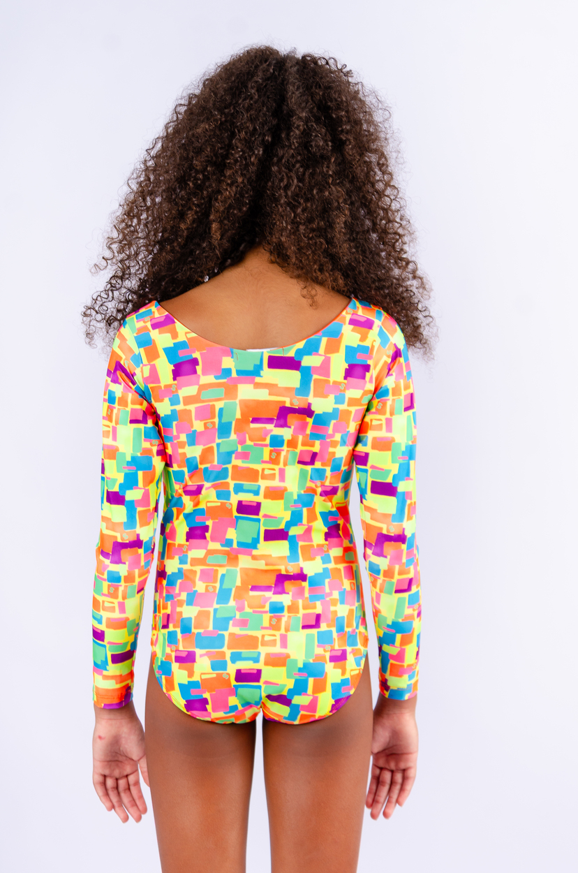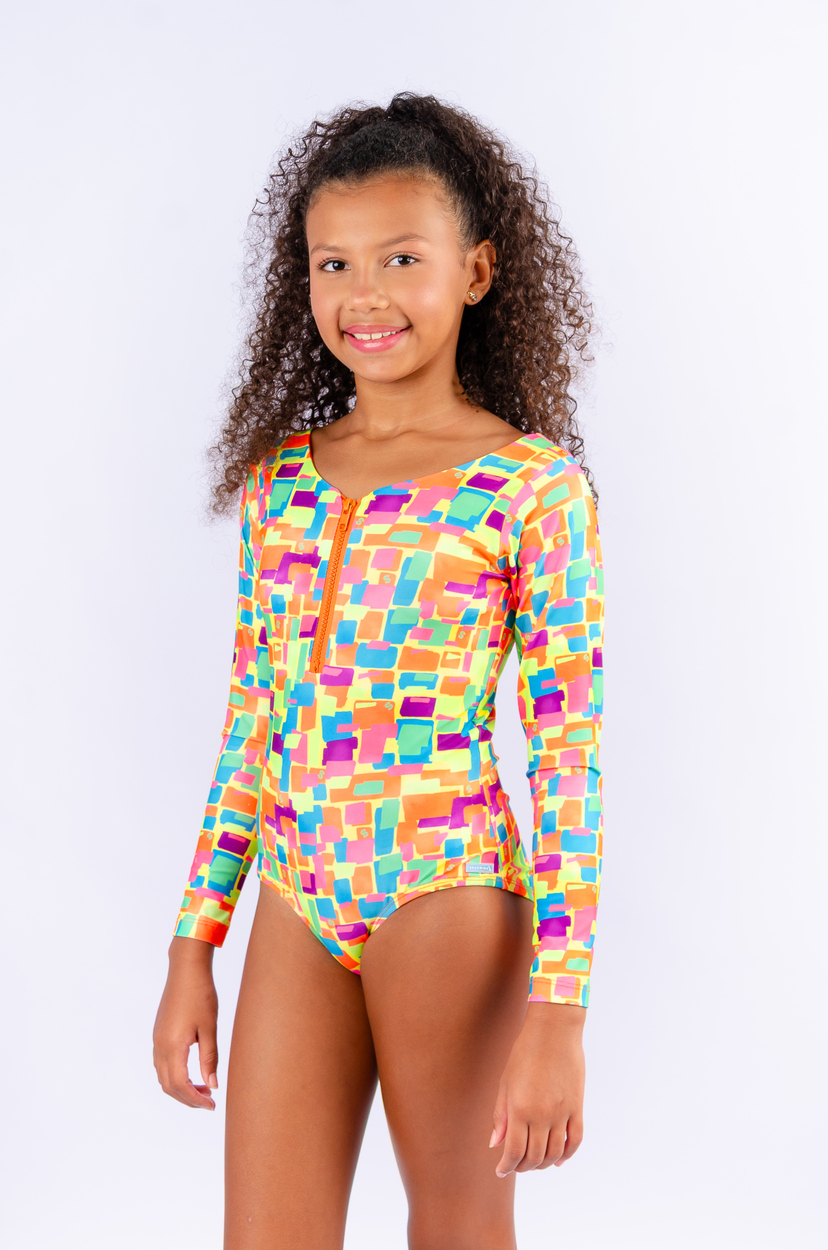 maiô inteiro com mangas e ziper na estampa pirueta