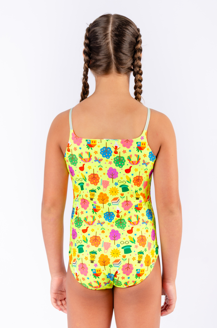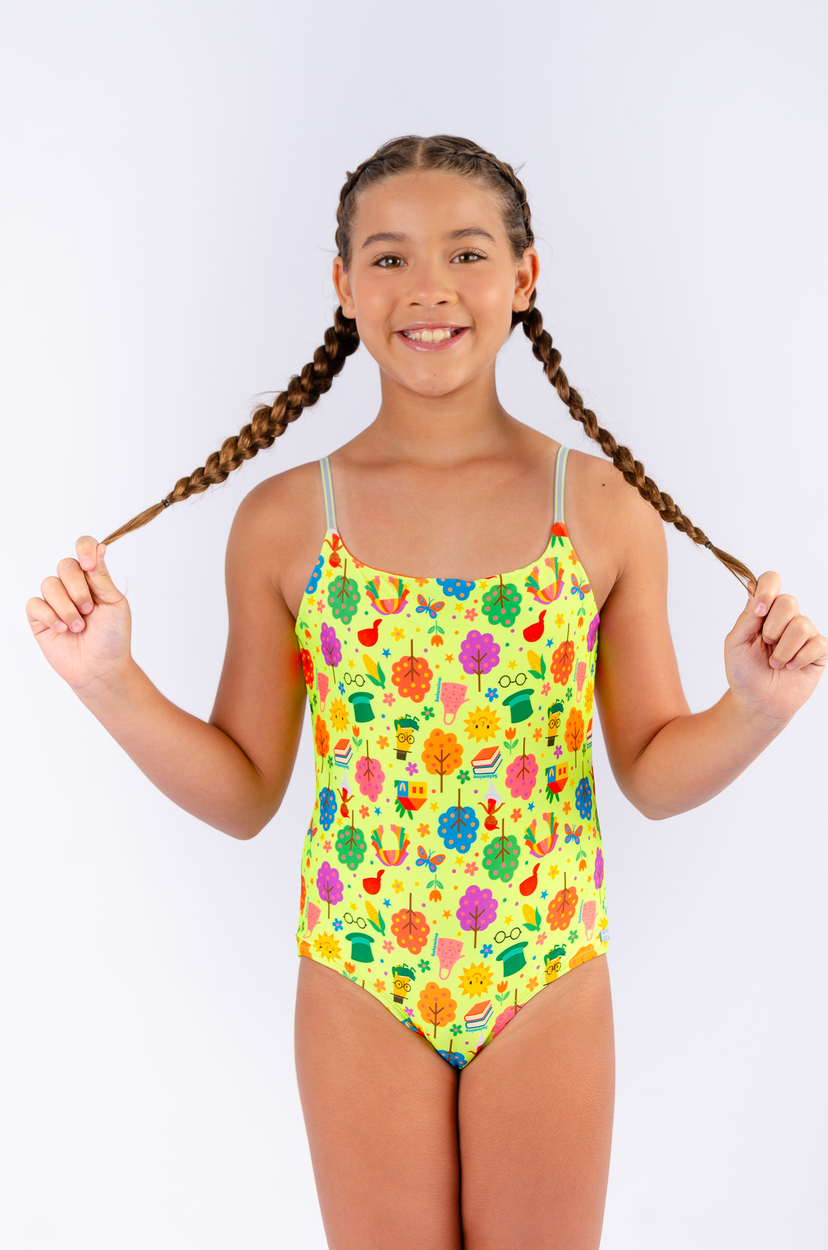 maiô inteiro na estampa sítio do pica pau amarelo