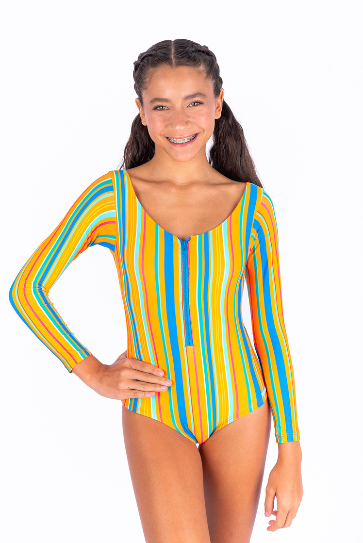maiô inteiro com ziper e mangas na estampa suassuna