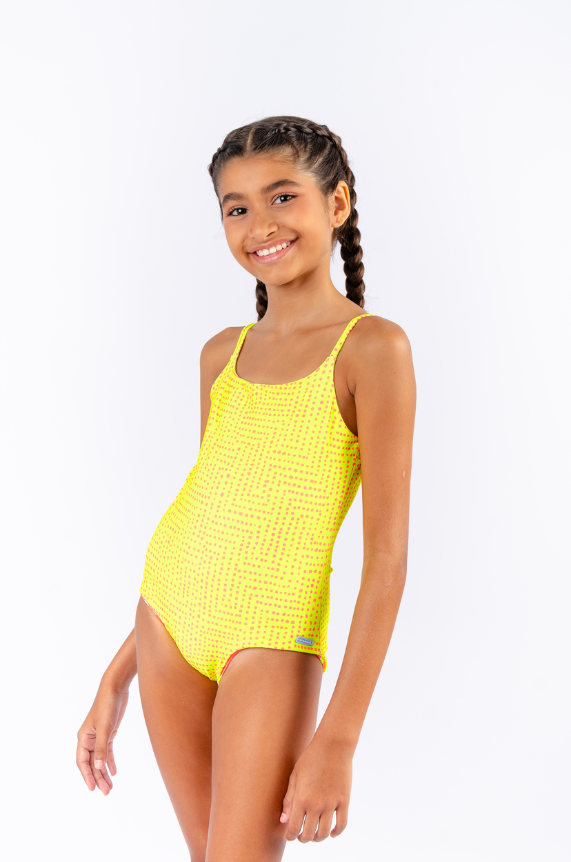 maiô inteiro dupla face na estampa a lenda e estampa ciranda cirandinha